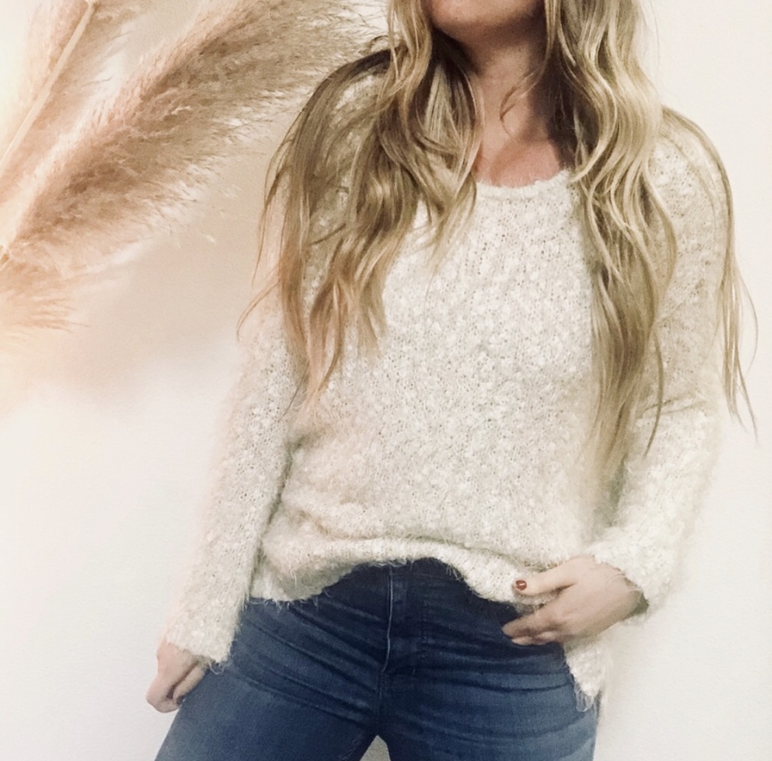 Hinge brand from Nordstrom. Cream fuzzy sweater. Size M Pre-Owned condition Shipping included to the 48 lower states upon receipt of PayPal payment.