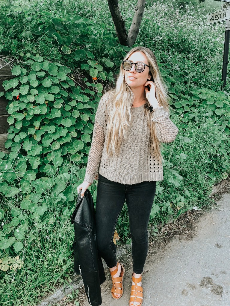 I paired an easy camel sweater for some added warmth, with my classic black high-waisted skinnies. And that touch of spring I was talking about? Letting those toes out in my favorite gladiators! Links below to grab this ENTIRE look in my Poshmark, or via PayPal.