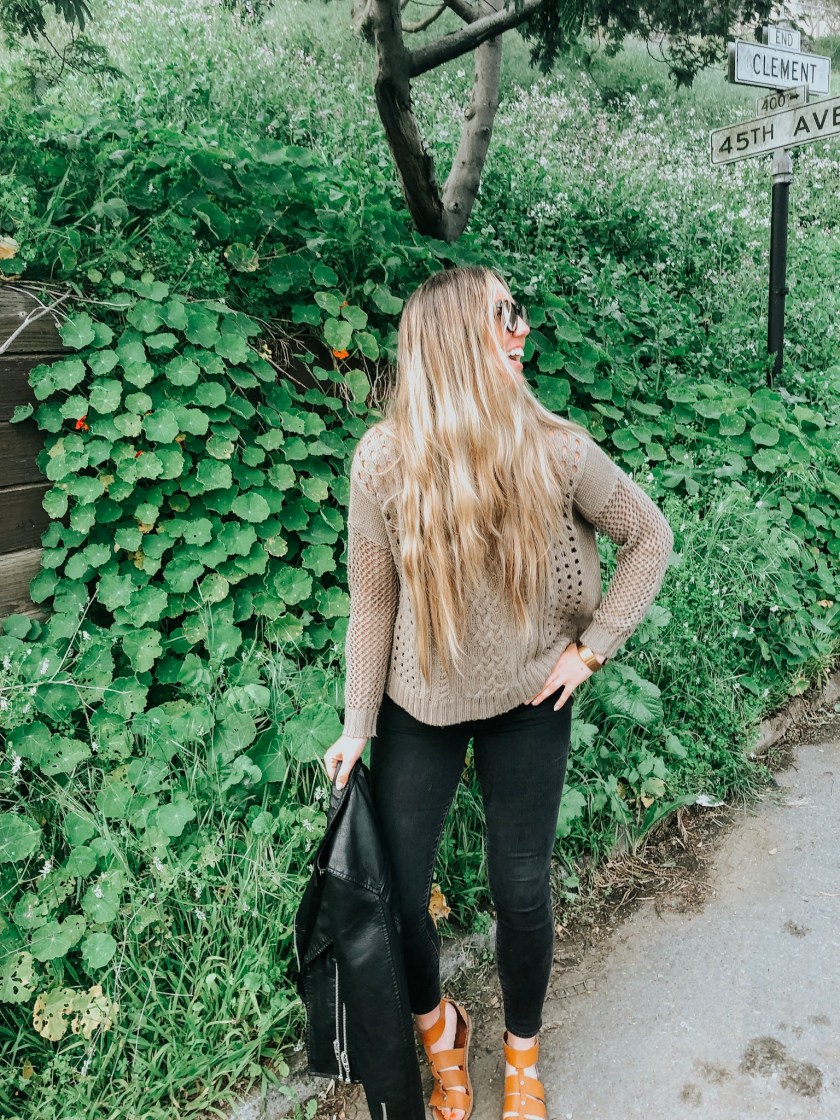 This look was something for a casual all-girls dinner that I tagged along with my Mama to, and met so many wonderful women! It was a brunch-themed potluck-style get-together hosted at her pal’s beautiful Outer Richmond flat. Let’s just say when I started in the inner Richmond it was about 70 degrees and beautifully sunny, and as the blocks passed out towards the ocean, it dropped to the 50’s and fog so dense you couldn’t even see the next street!